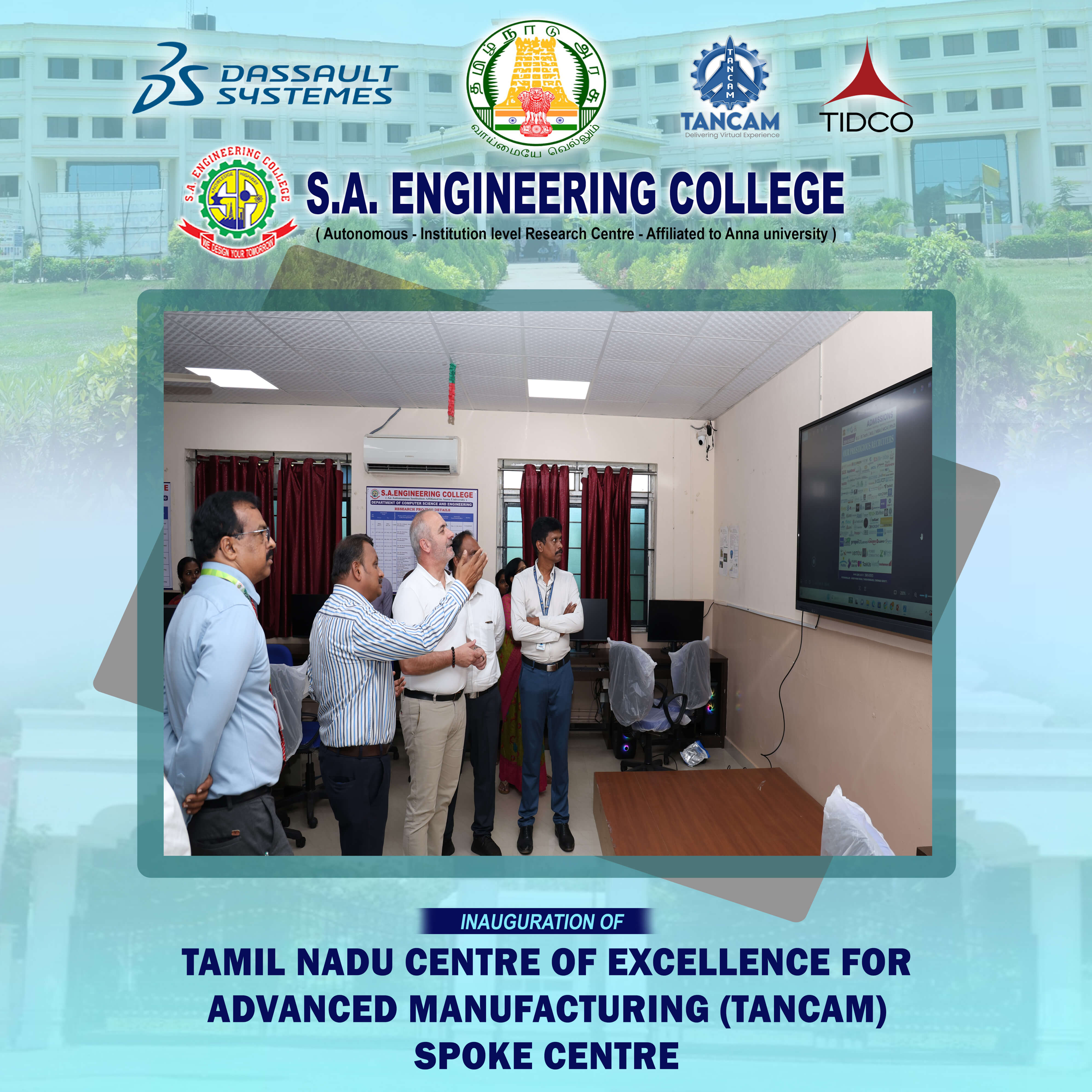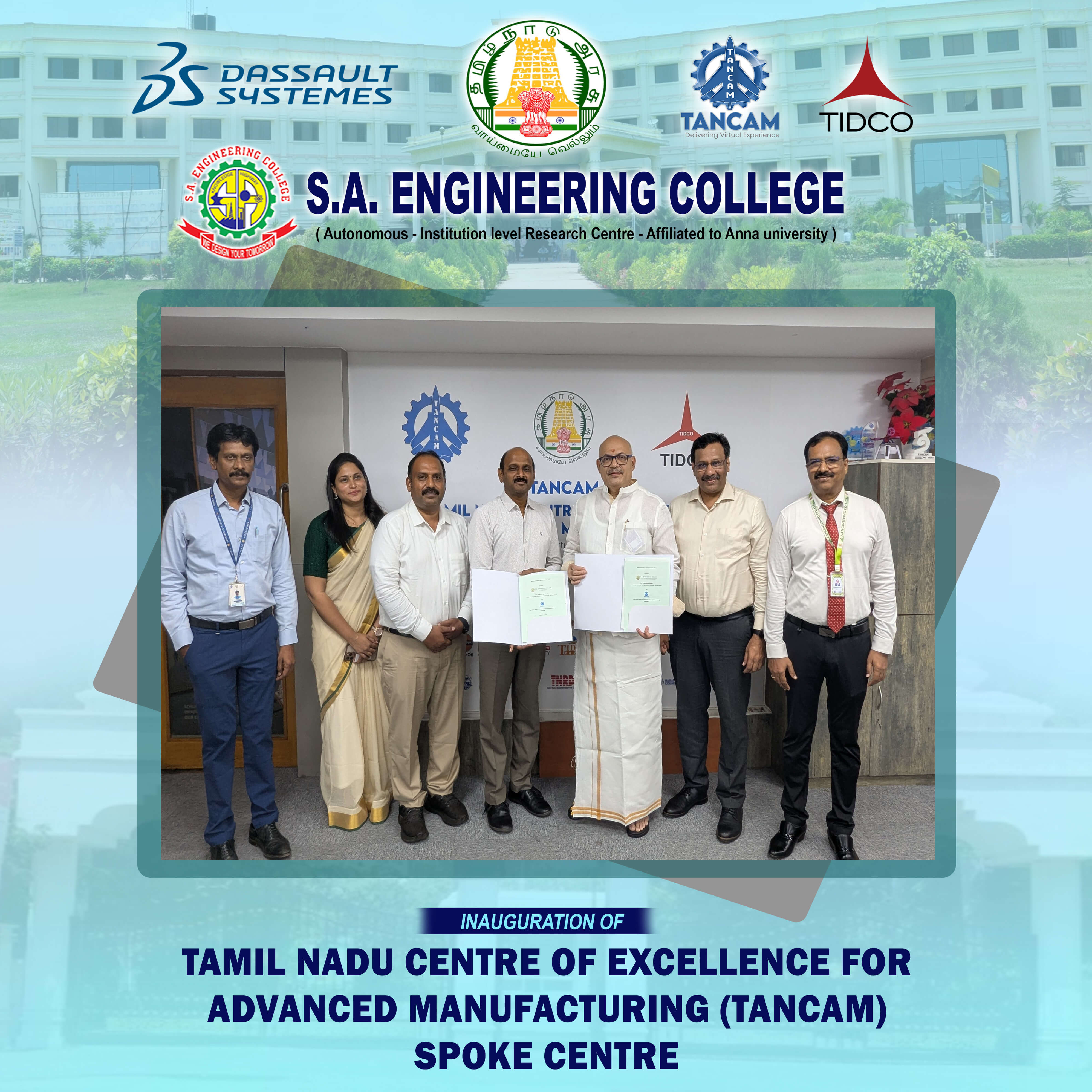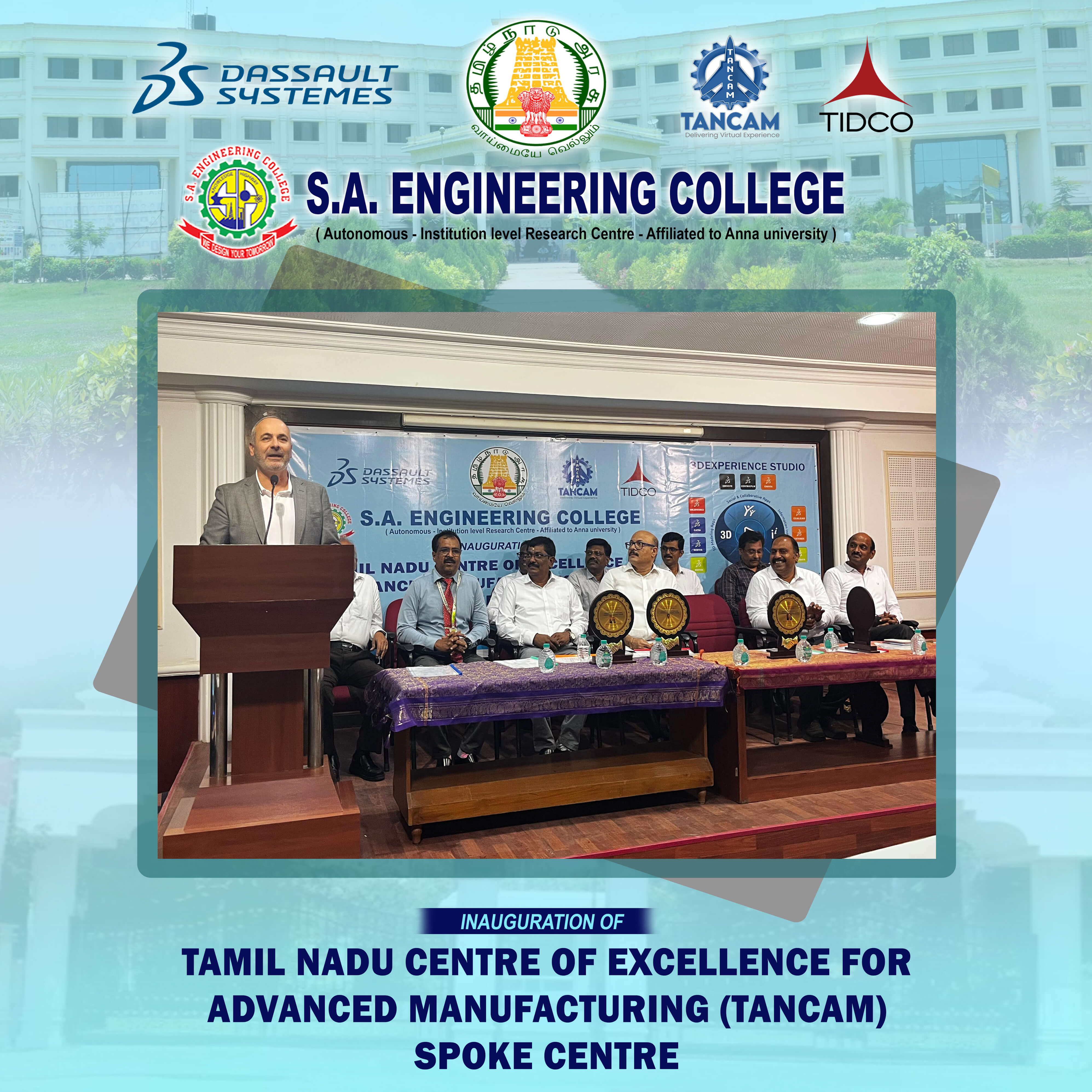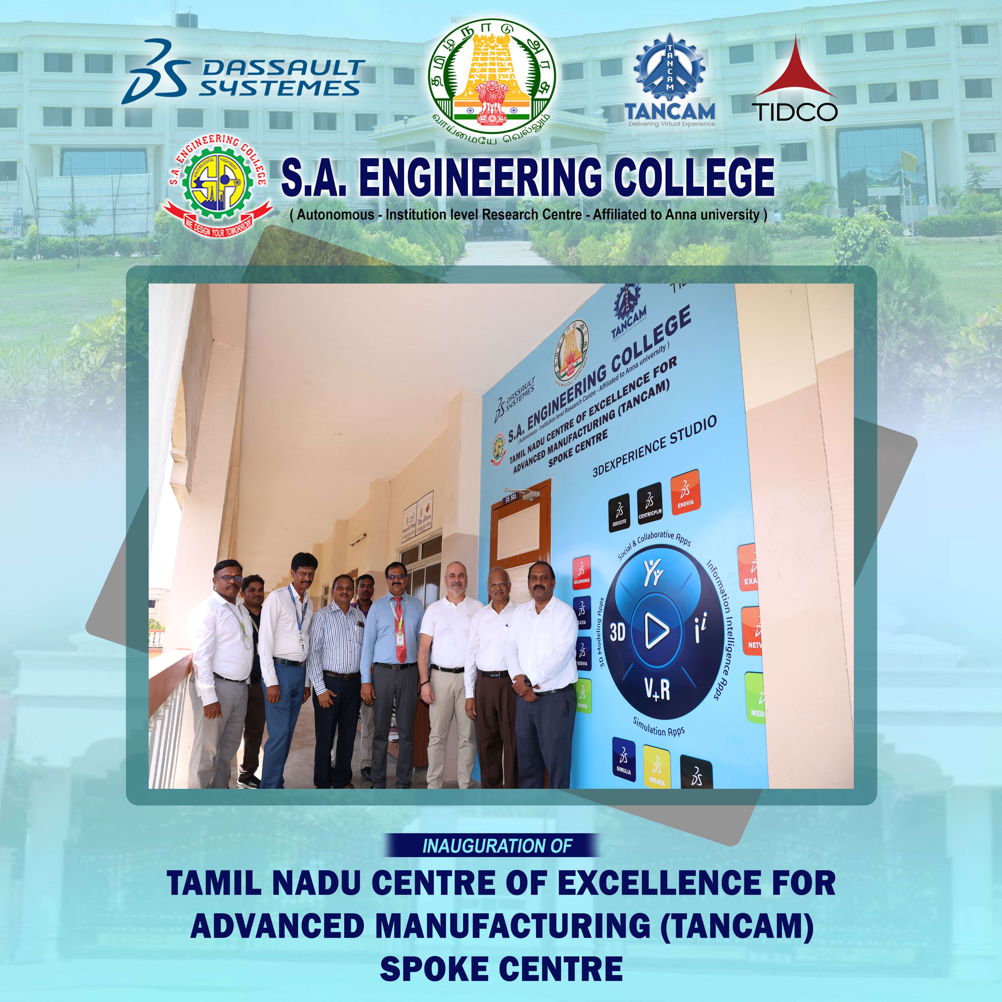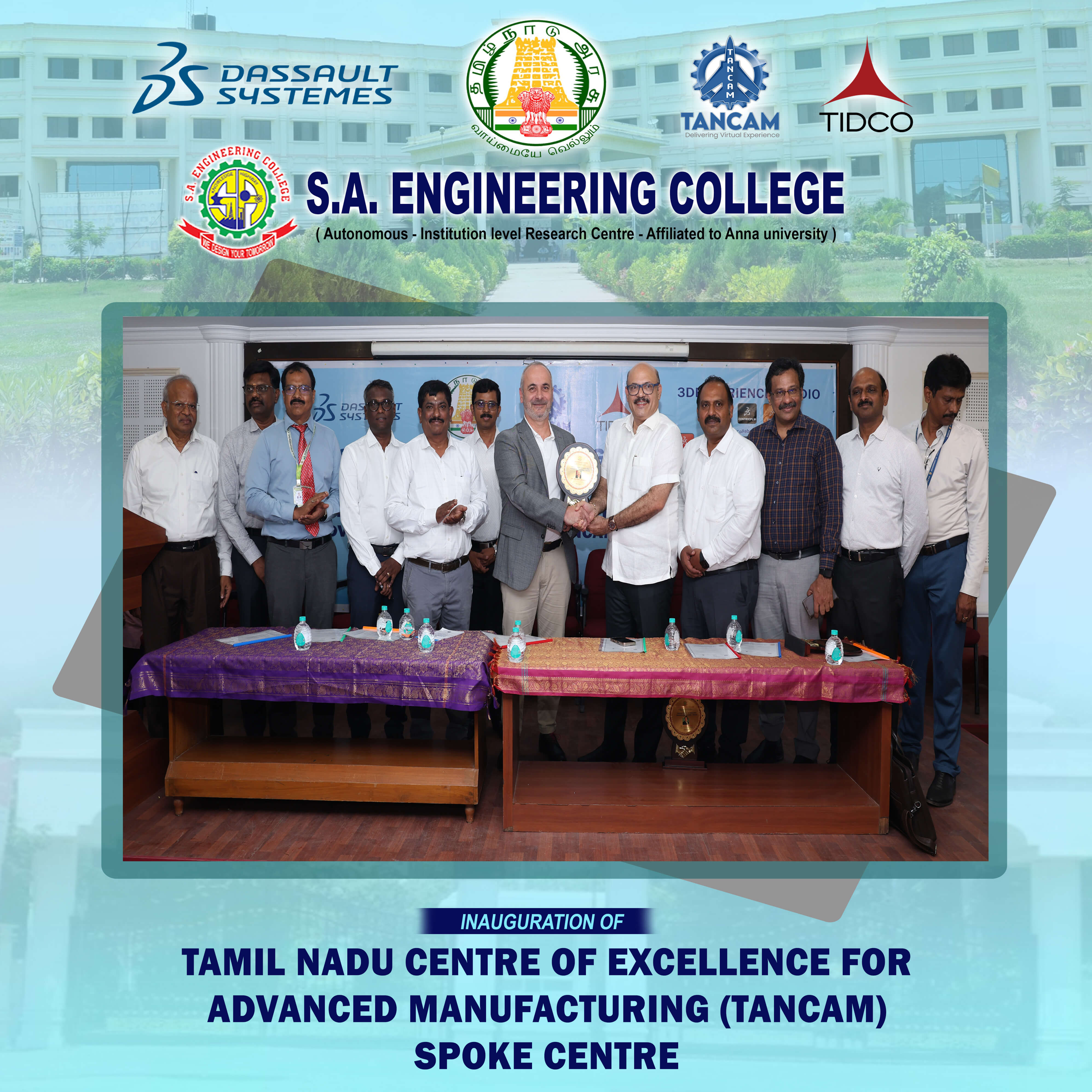 On 06.10.2025 (Monday), our institution celebrated the grand inauguration of the SAEC 3DEXPERIENCE STUDIO, a TANCAM Spoke Centre, established in collaboration with the Tamil Nadu Centre of Excellence for Advanced Manufacturing (TANCAM), an initiative of Tamil Nadu Industrial Development Corporation (TIDCO) and Dassault Systèmes.