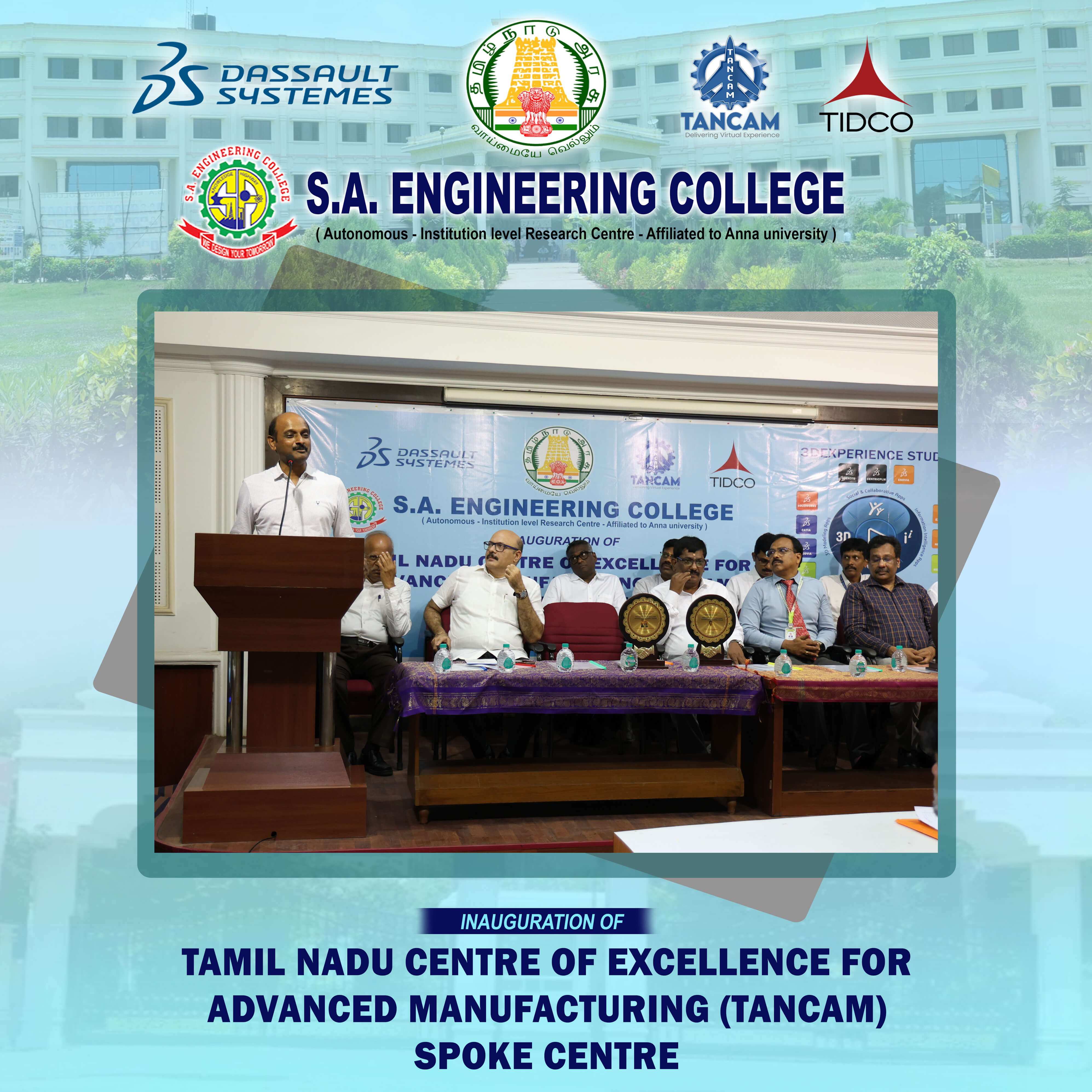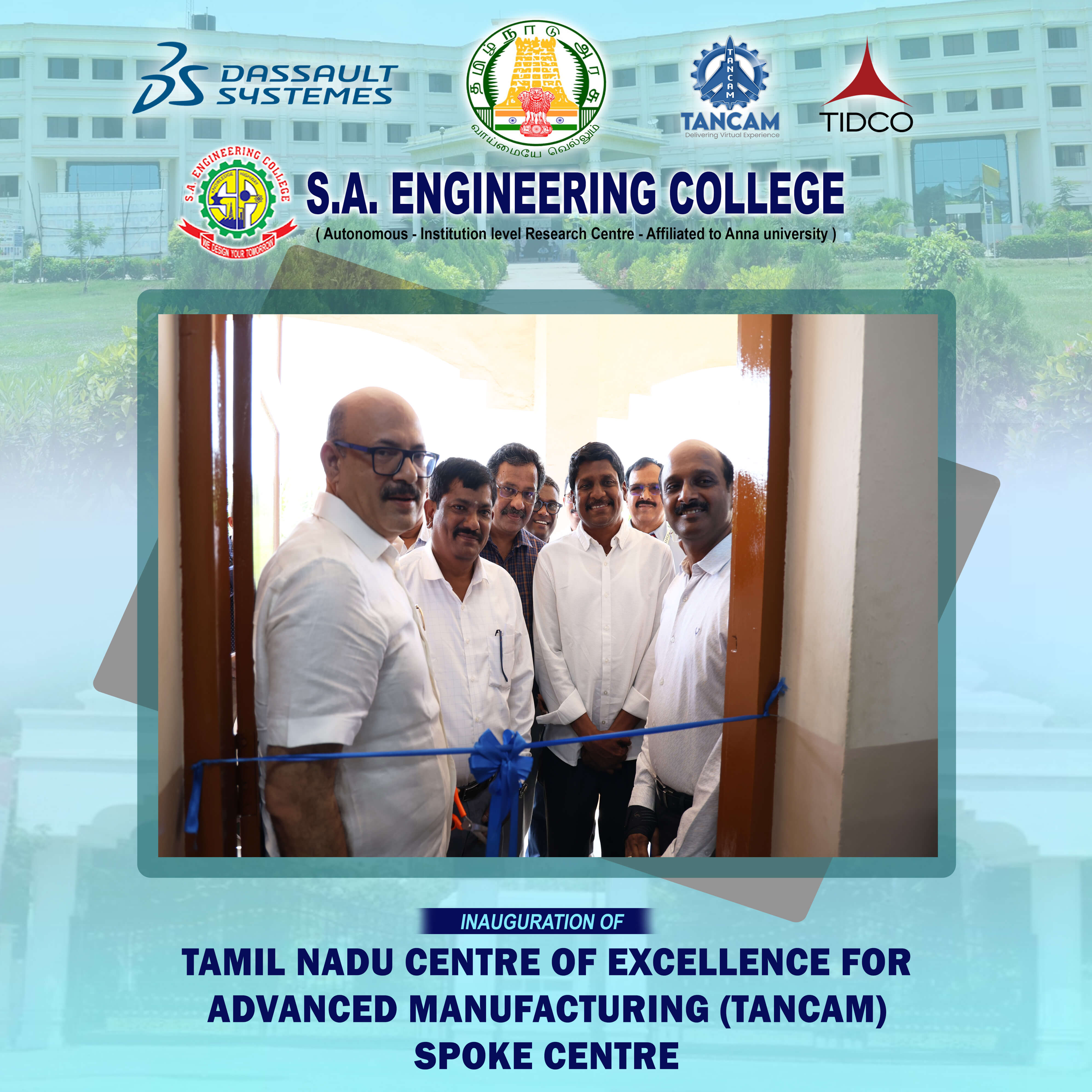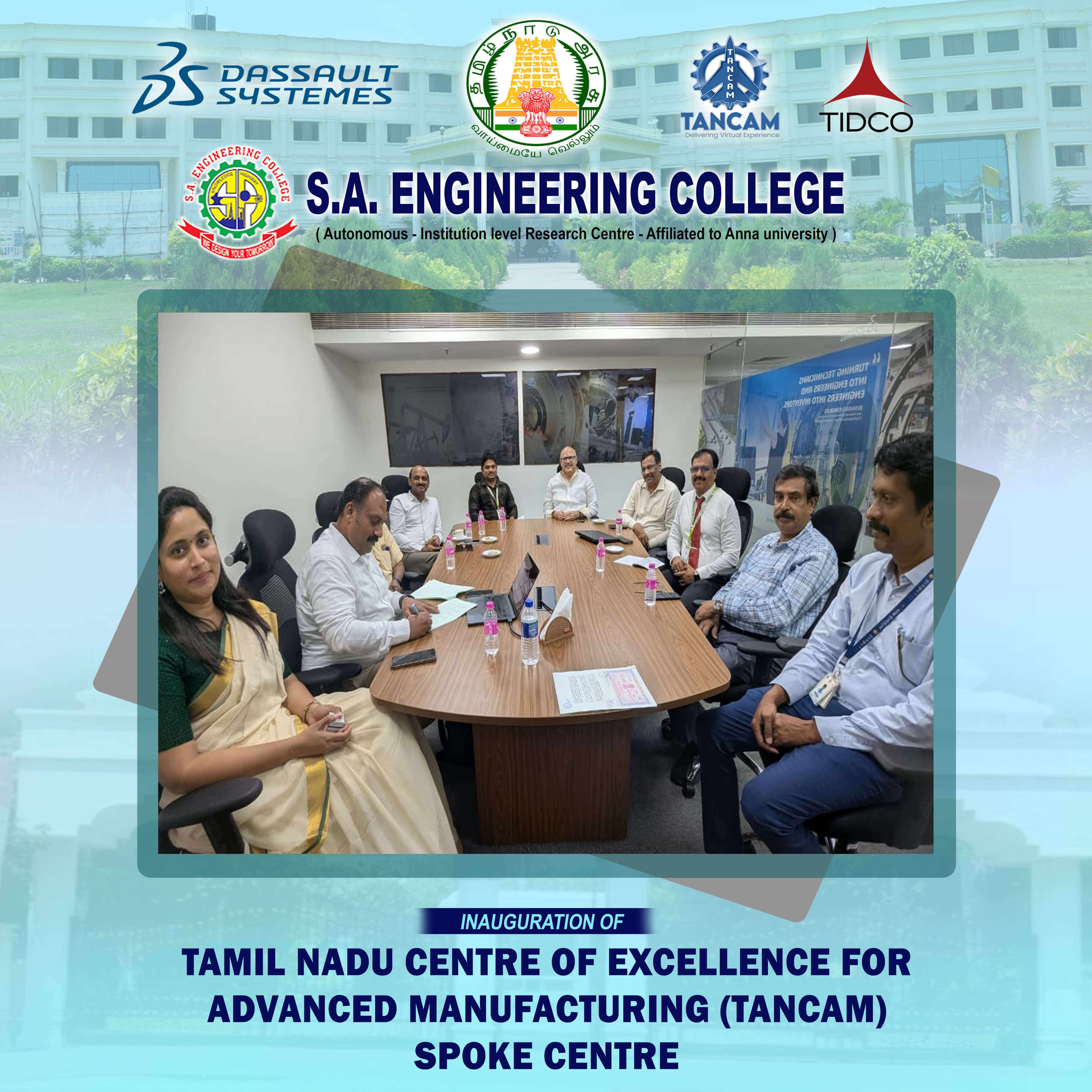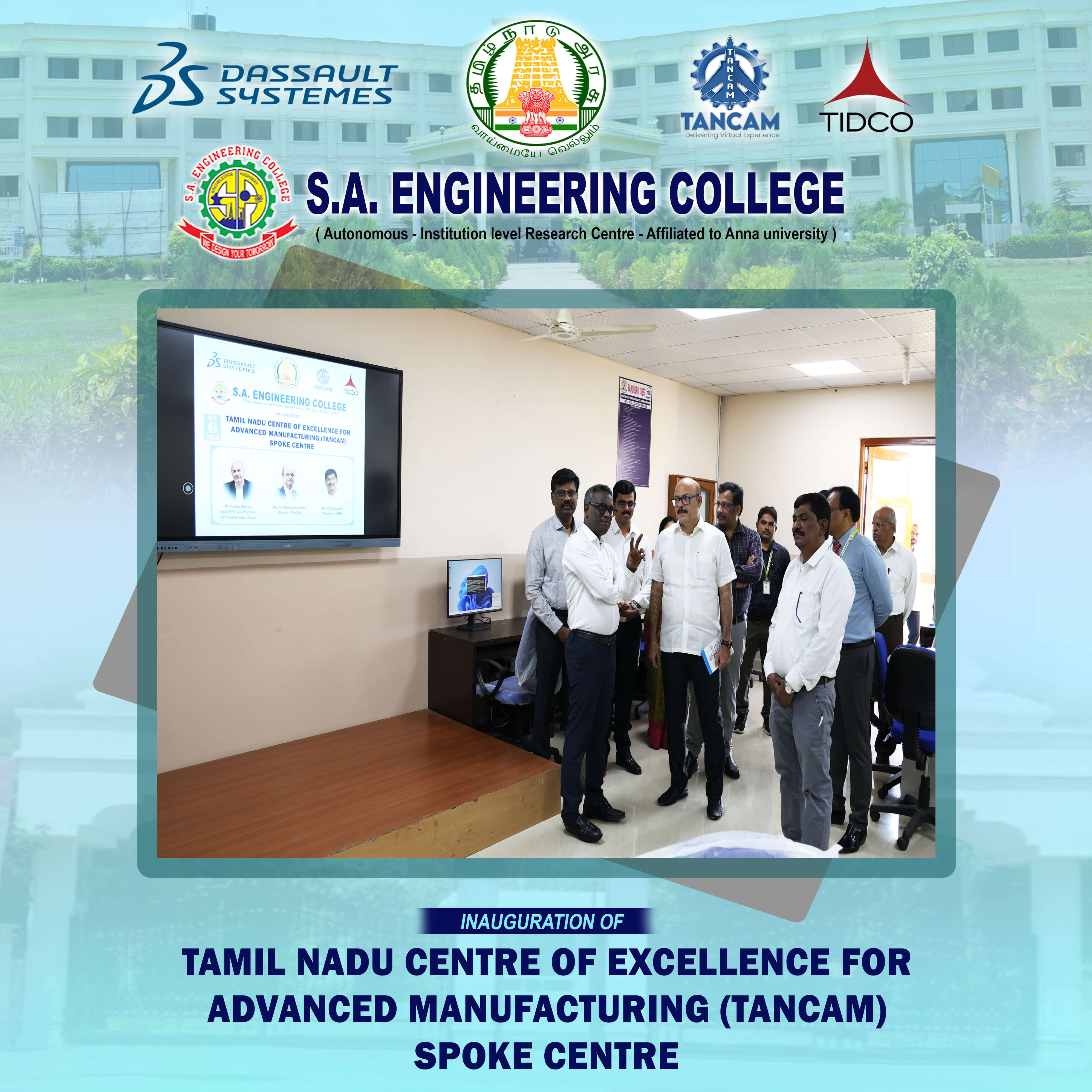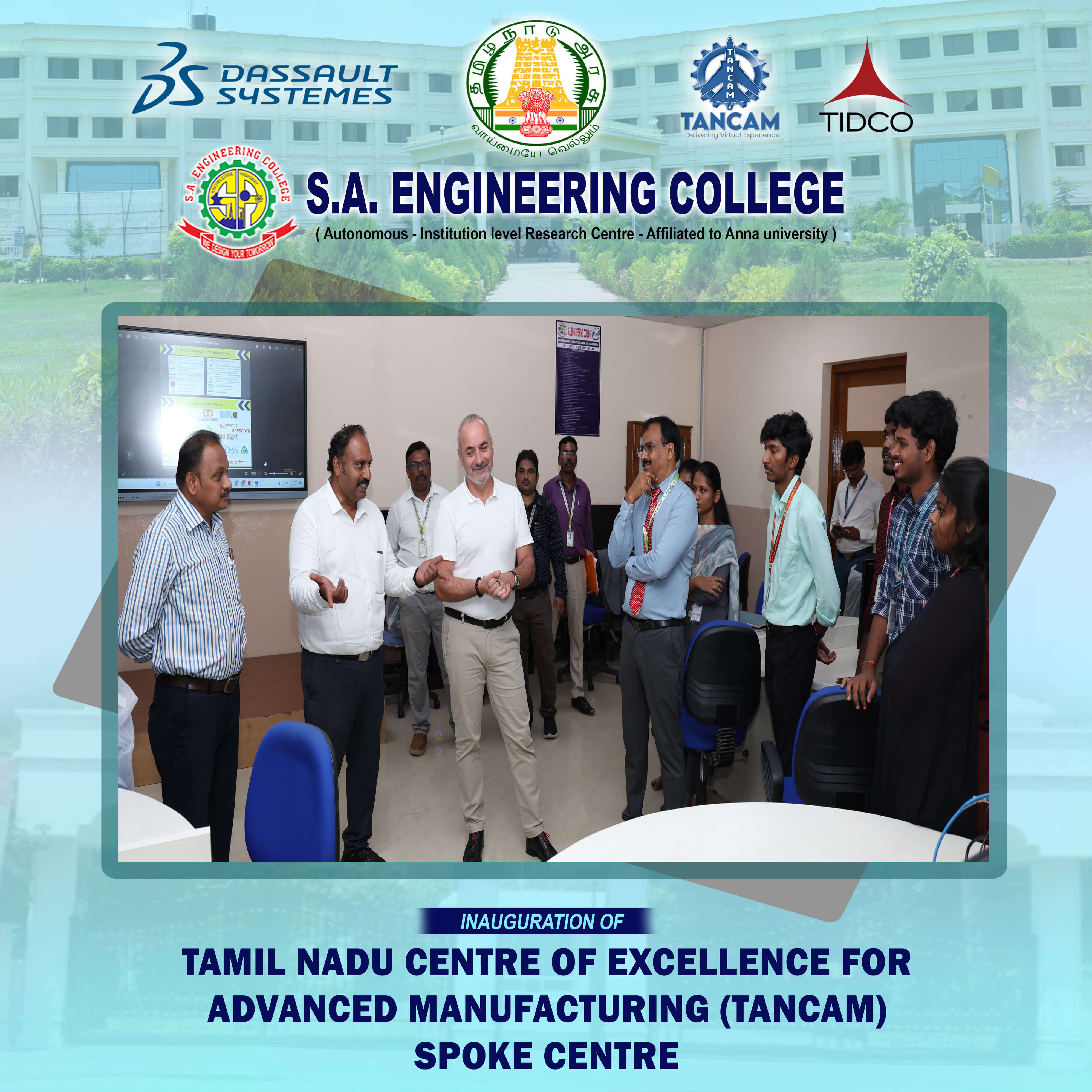 On 06.10.2025 (Monday), our institution celebrated the grand inauguration of the SAEC 3DEXPERIENCE STUDIO, a TANCAM Spoke Centre, established in collaboration with the Tamil Nadu Centre of Excellence for Advanced Manufacturing (TANCAM), an initiative of Tamil Nadu Industrial Development Corporation (TIDCO) and Dassault Systèmes.