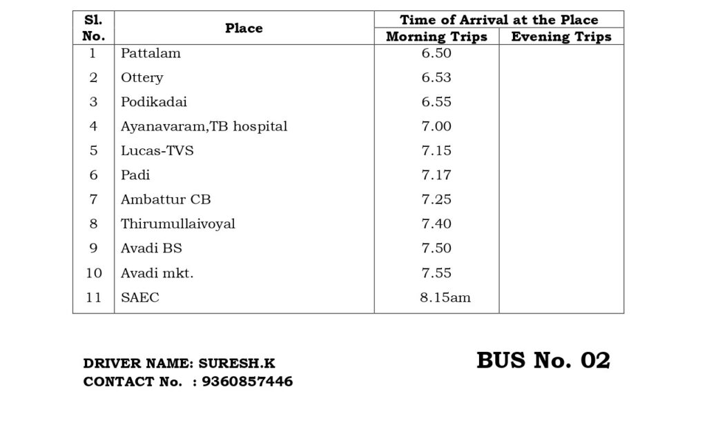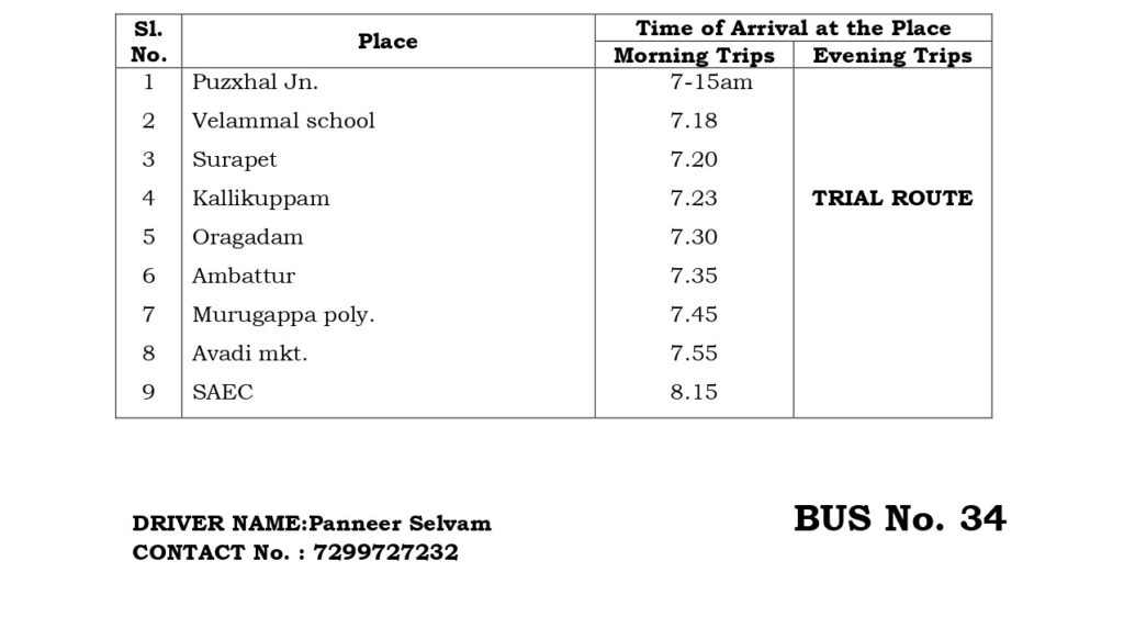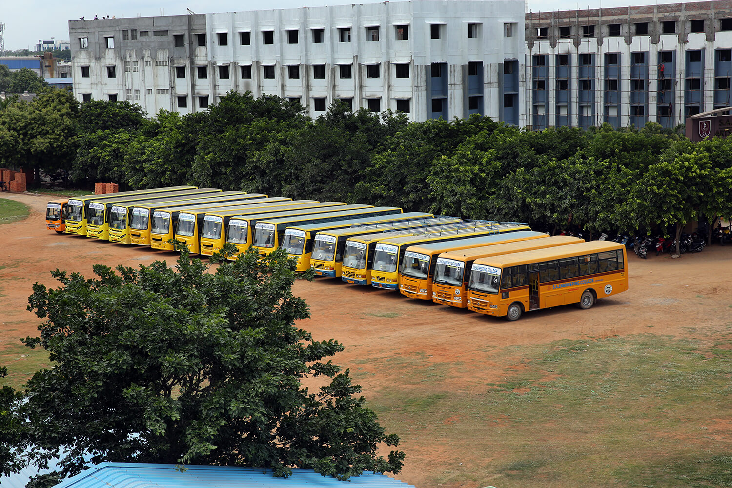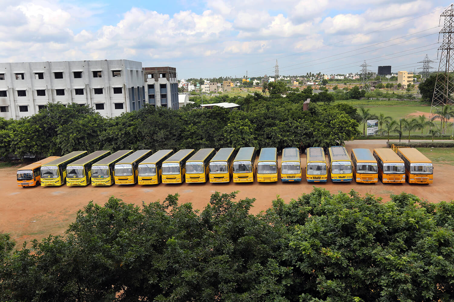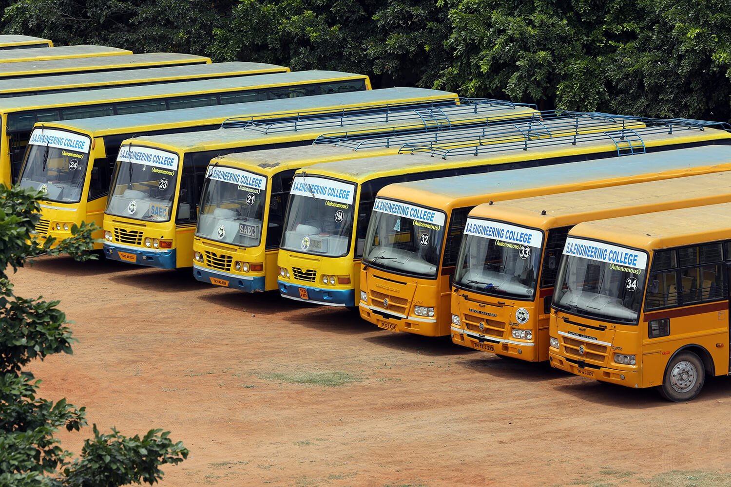 The College has a fleet of 30 buses to transport students and staff from various parts of the city and its neighborhood areas to the College and back home Transport facility will be arranged to every student. Every student is expected to avail the transport facility to enable him/her to be punctual to come to the College. Besides the regular scheduled trips, the facility is extended for occasions like after the College hour Special Coaching classes, Placements and Training, Visit to Local Industries, hospitals, NSS Camps, etc.