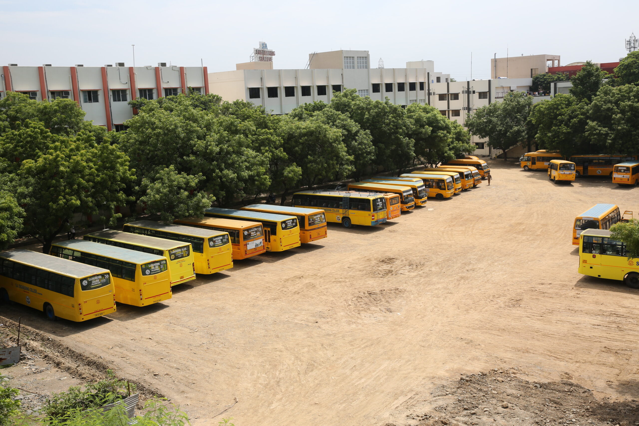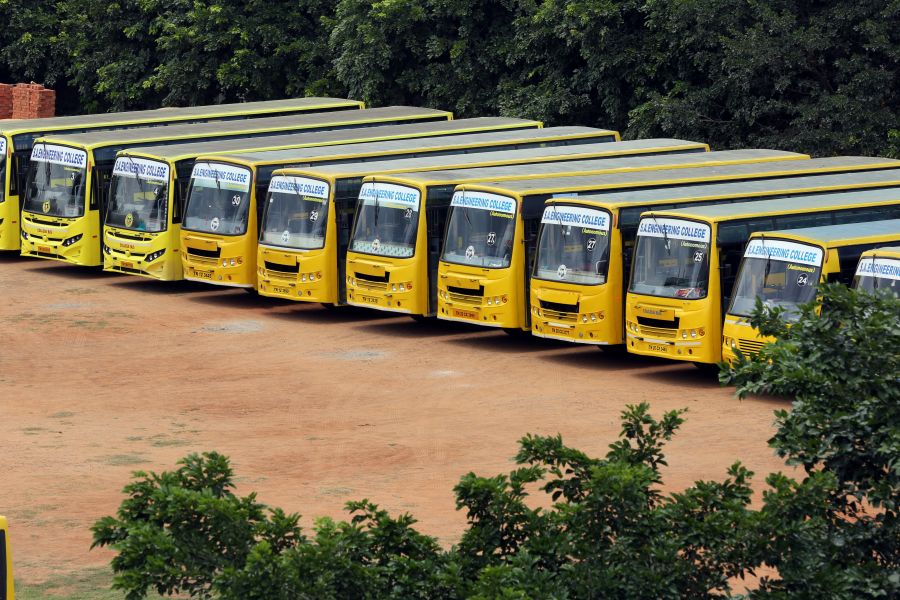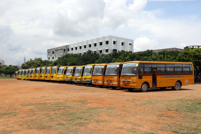 The College has a fleet of 30 buses to transport students and staff from various parts of the city and its neighborhood areas to the College and back home Transport facility will be arranged to every student. Every student is expected to avail the transport facility to enable him/her to be punctual to come to the College. Besides the regular scheduled trips, the facility is extended for occasions like after the College hour Special Coaching classes, Placements and Training, Visit to Local Industries, hospitals, NSS Camps, etc.