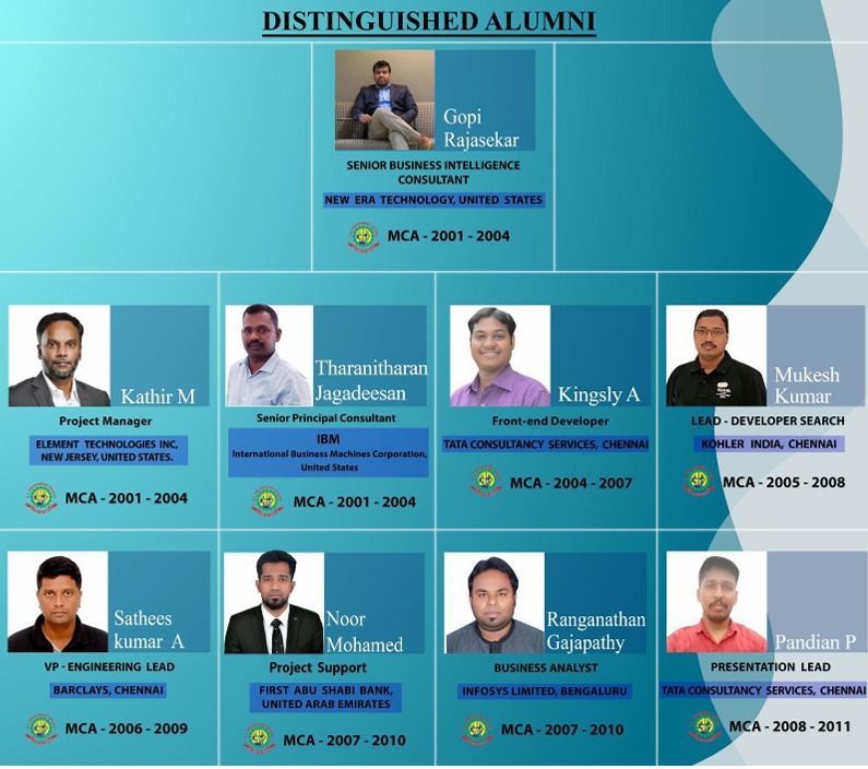 - In pursuit of college vision and mission, the department had taken new initiatives in order to achieve improved educational practice to help students to reach their academic and career goals. By which University rank holders has been made possible for the last 11 years by the department. MCA department stand First in University results in our zone.