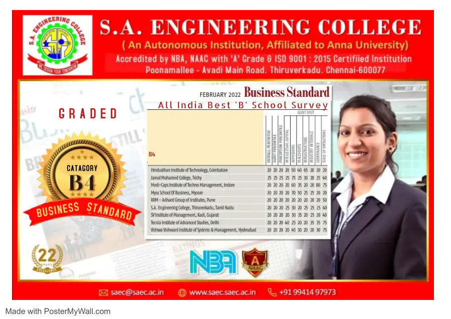 84 in Top 100 Pvt. Colleges in India 20th position in Tamil Nadu |