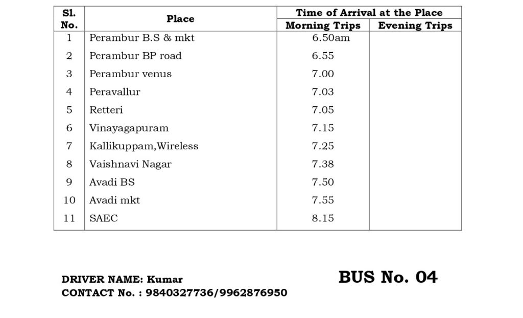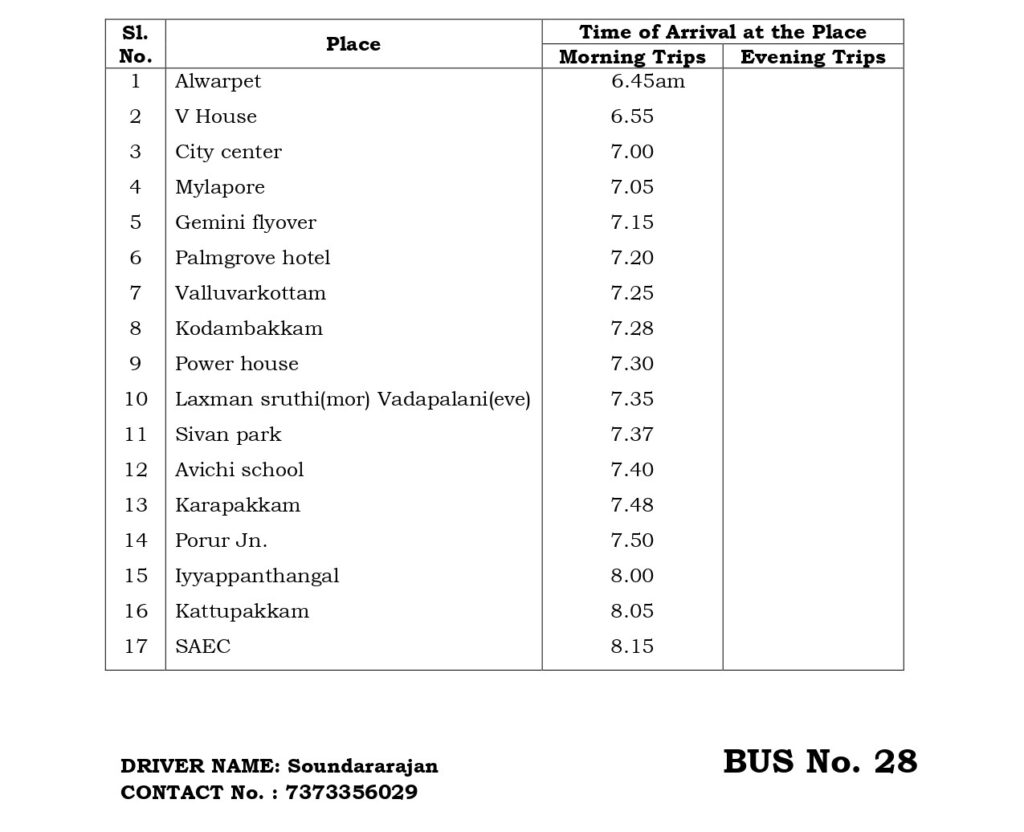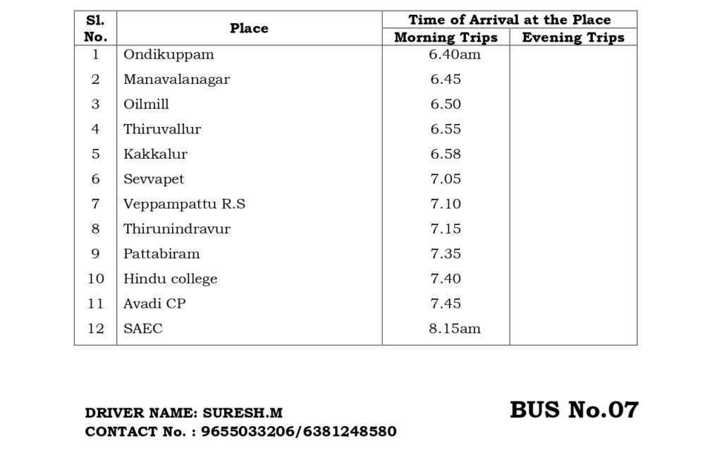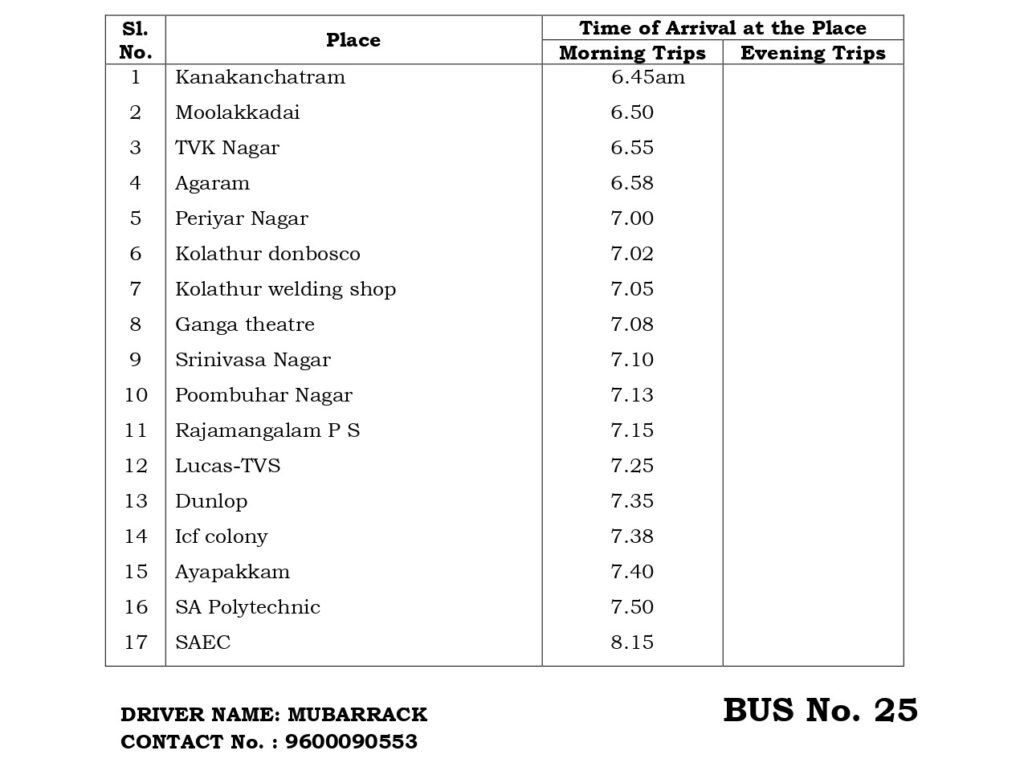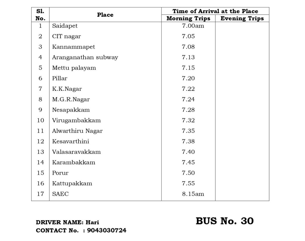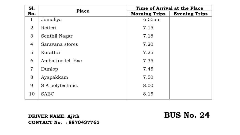 The College has a fleet of 30 buses to transport students and staff from various parts of the city and its neighborhood areas to the College and back home Transport facility will be arranged to every student. Every student is expected to avail the transport facility to enable him/her to be punctual to come to the College. Besides the regular scheduled trips, the facility is extended for occasions like after the College hour Special Coaching classes, Placements and Training, Visit to Local Industries, hospitals, NSS Camps, etc.